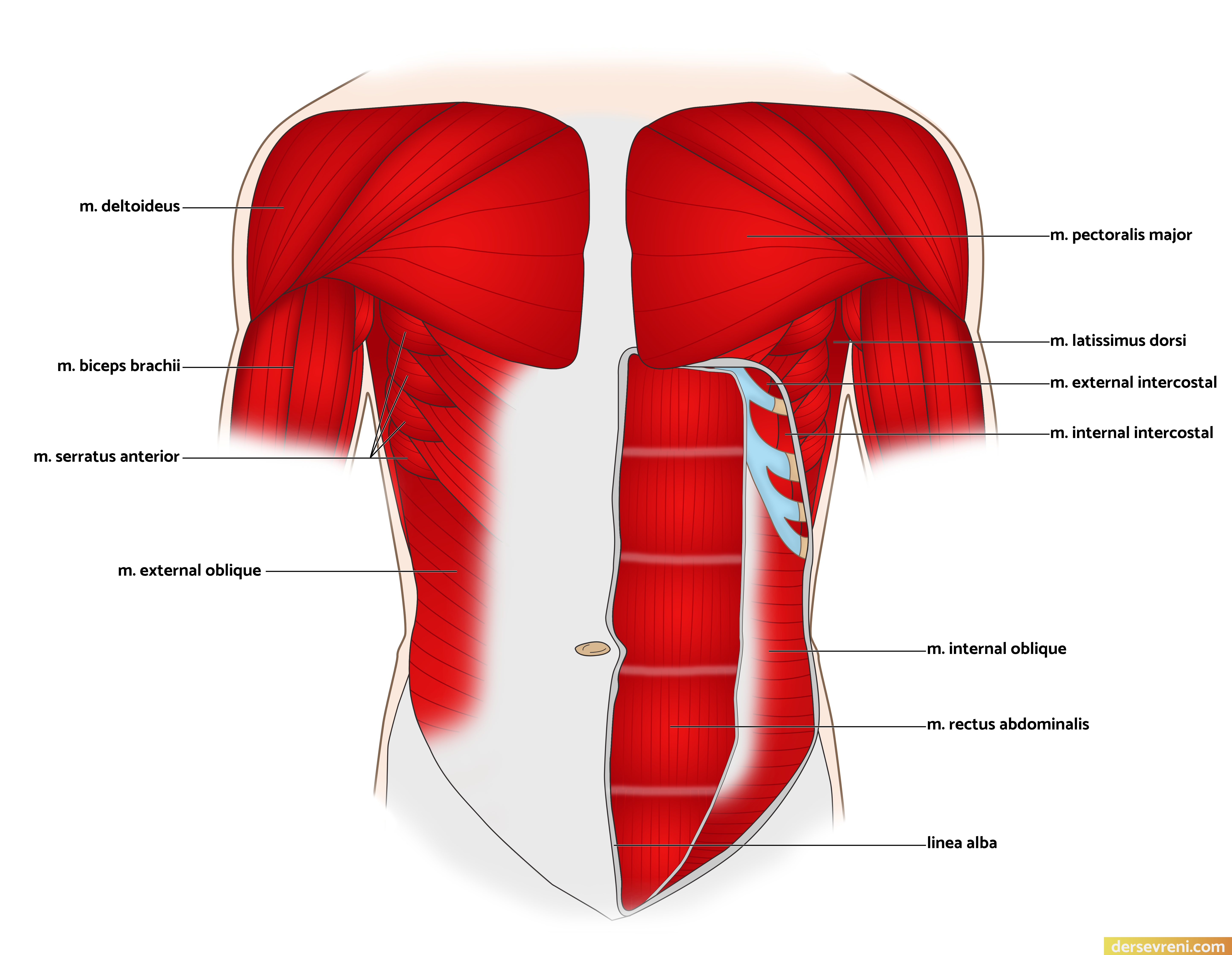 - Göğsün ön kısmında bulunan, kol ve omuza uzanan büyük bir kastır. Kolun adduksiyonunu, fleksiyonunu ve rotasyonunu sağlar.